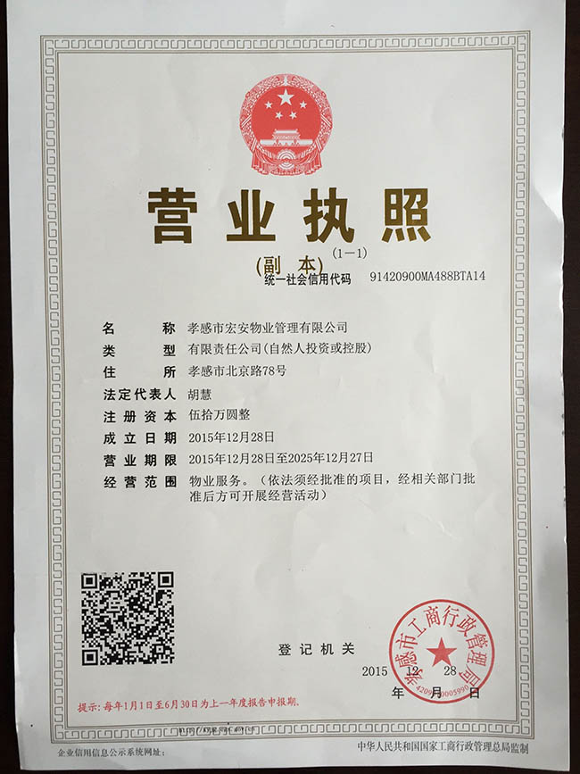 為此,我公司為了更好的服務(wù)廣大業(yè)主,在原有保安公司的基礎(chǔ)下成立了孝感市宏保物業(yè)管理有限公司